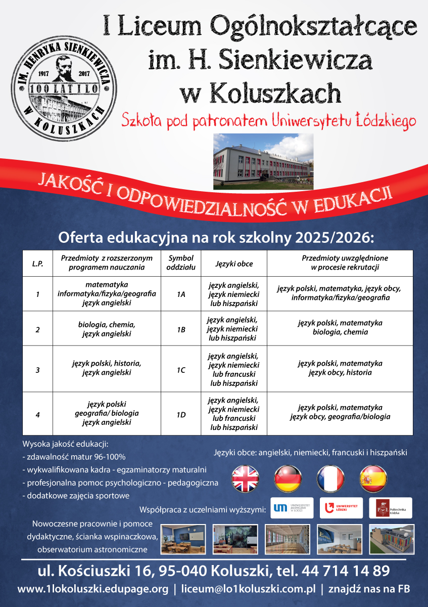 Wszelkie prawa zastrzeżone © 2025 I Liceum Ogólnokształcace im. H. Sienkiewicza w Koluszkach